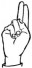 На ћирилици написано БУДИМИР БЛАГОЈЕВИЋ састоји се из 17 слова [?]. Исписано ћириличном једноручном азбуком за глувонеме:
